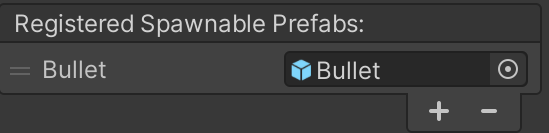 }可以看到在PlayerAttackController中,我绑定了Fire的Command到开火的Action上,并在其中处理了子弹创建的逻辑。需要注意的时,仅仅只是Instantiate预制体是不够的,要让子弹同样在客户端出现,必须加上NetworkServer.Spawn。再这之前,为了确保Network Manager可以识别创建的物体,还需要将该预制体添加到Network Manager的注册列表中。