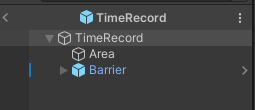 可以看到最外层有着名为TimeRecord的游戏对象,然后下面才是障碍的本体。之所以会这样是因为早期设计的时候设计成了只有在固定区域中才可以录制,也就是在名为Area的游戏对象的范围内。于是为了让玩家可以移动整个TimeRecord来选择开始录制时的位置,选择了让TimeRecord先整体进行自由移动的输入接受,然后让再开始录制之后让Barrier进行物理模拟的移动。而由于TimeRecord的移动不需要物理模拟,就写成了逻辑移动,也就是直接操作transform。本来开始录制了之后,它就不能再接受玩家的输入了,但是我的设置晚了一步。
