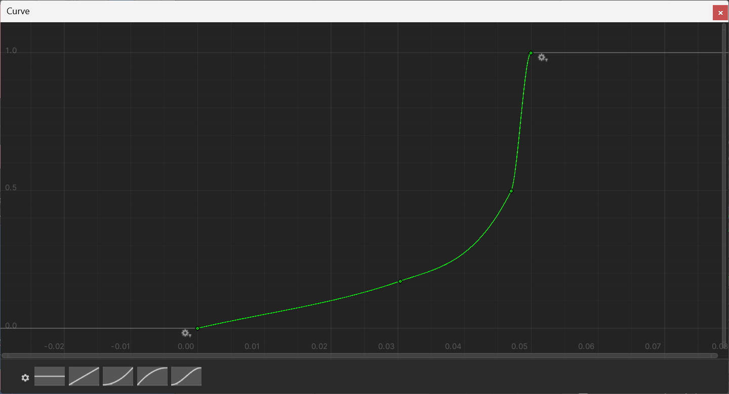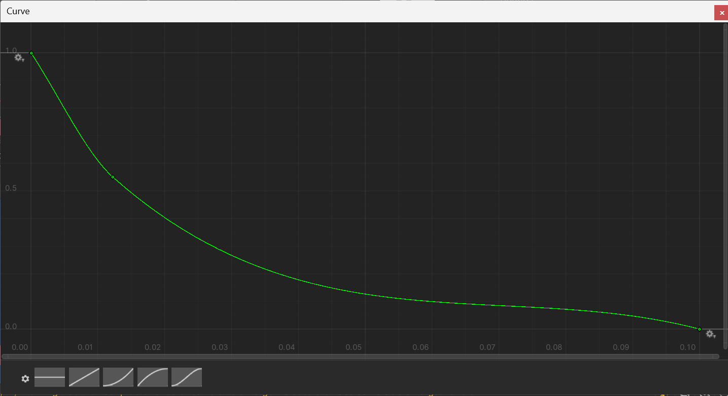 紧接着就是处理水平的位移。为了使的移动效果更加真实,我们通常会设置一个加速和减速的过程,而根据初中物理,我们都知道v = v_0 + at,也就是加速度公式。但是这里我们并不使用这个公式来控制速度。主要原因是,速度的变化并非完全线性,也就是说加速度也是动态变化的,这样就很复杂了。于是这里我选择直接操作速度,而为了能够精确的控制速度的变化,我使用了Unity的AnimationCurve。